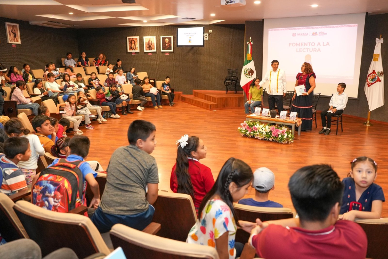 Oaxaca de Juárez, Oax. 7 de abril de 2026.- Como parte del programa “Fomento a la Lectura, Un pueblo leyendo para transformar su historia”, el Gobernador Salomón Jara Cruz compartió la narración de libros con estudiantes de nivel preescolar, primaria y secundaria de diferentes municipios de Valles Centrales.